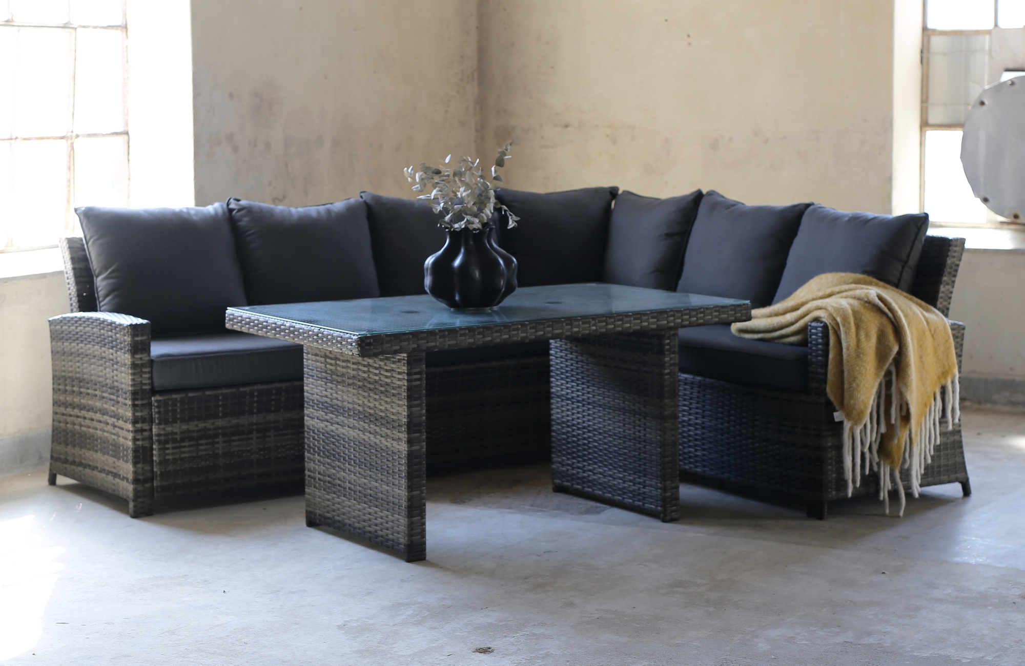 Daven utegrupp med bord - Grå konstrotting