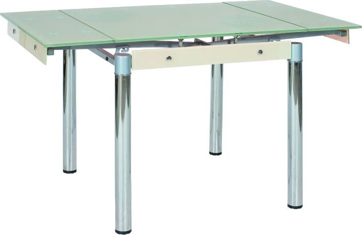 Förlängningsbart matbord i metall och tempererat glas.