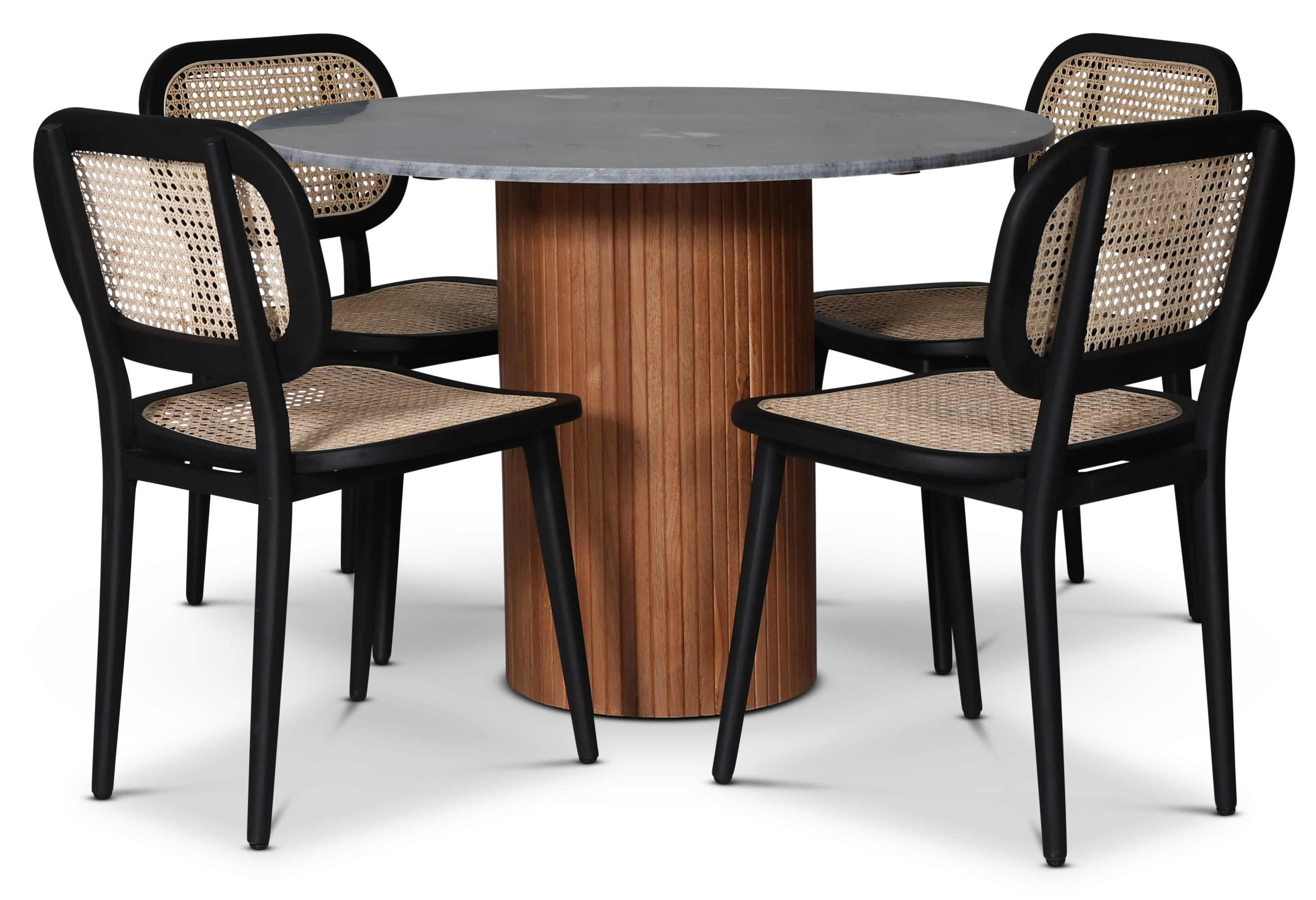 Decibel matgrupp; runt matbord i marmor + 4 st Siknäs stolar rotting