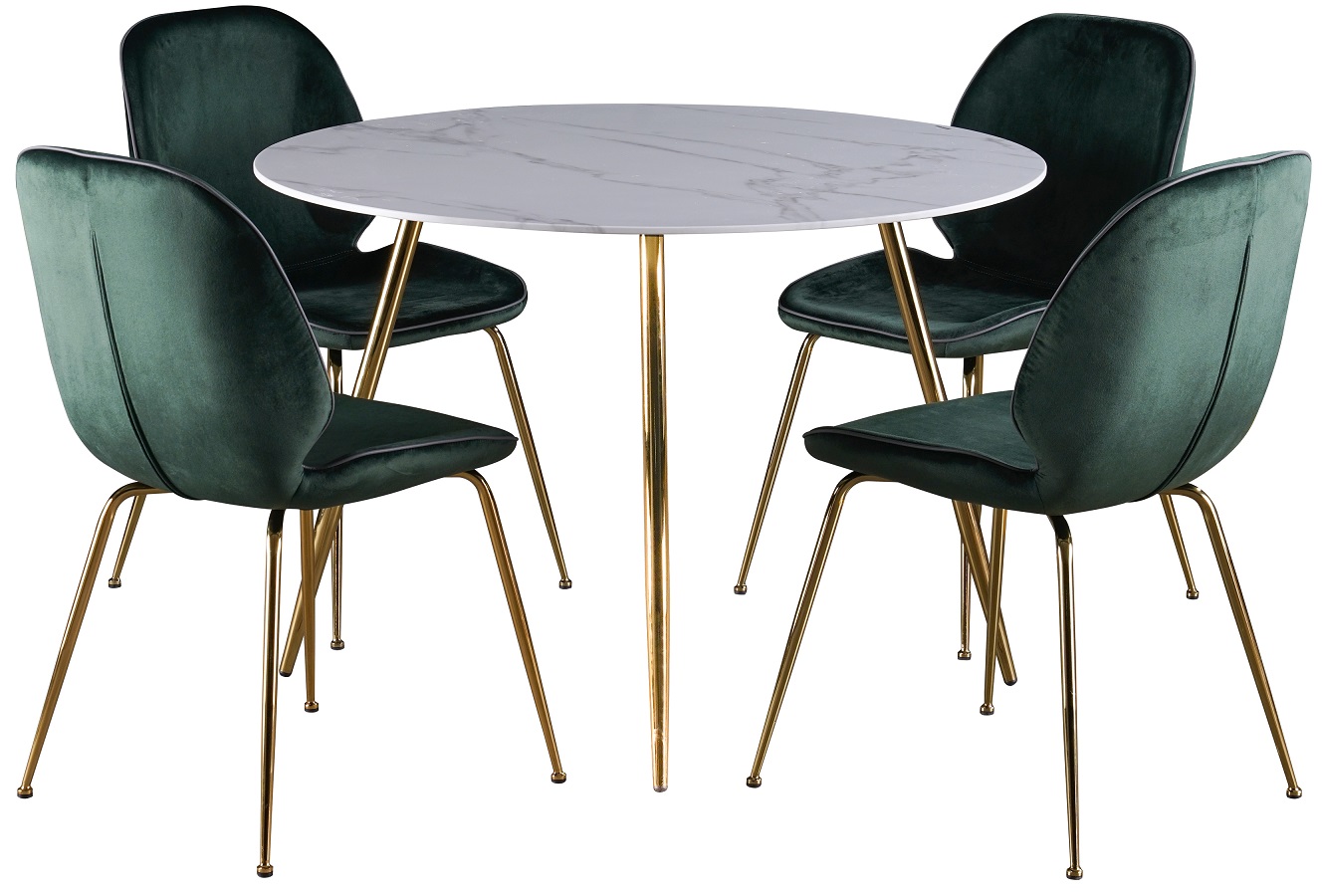 Deco matgrupp 110 cm runt bord + 4 st Deco stolar grön sammet / Mässing