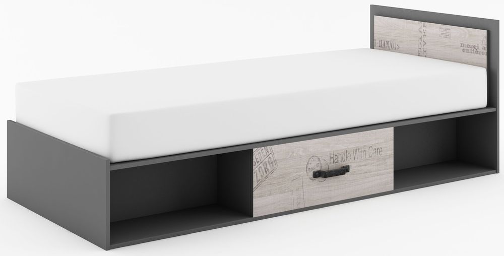 Deena säng med förvaring 90x200 cm - Graphite/ek