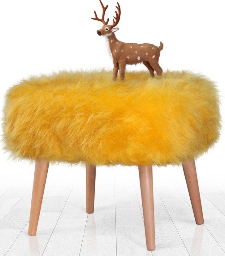 Sittpuff av trä. Klädd med polyester. Stoppning av skum.