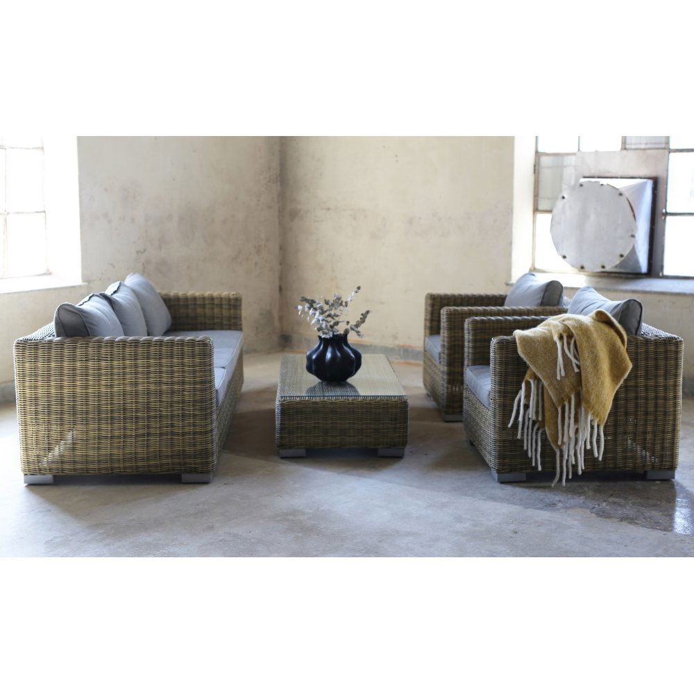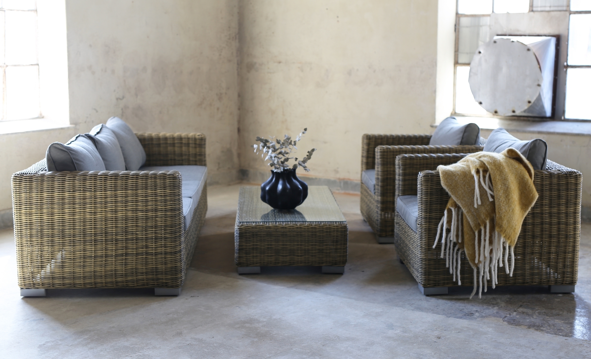 Bahamas utegrupp, Stor Soffa + 2 st fåtöljer + soffbord i konstrotting: