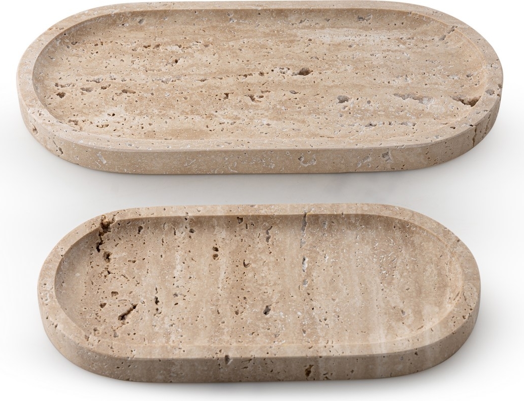 Dekorationsfat i beige Travertinmarmor 2 delar - 25/30 x 12/15 x 2 cm