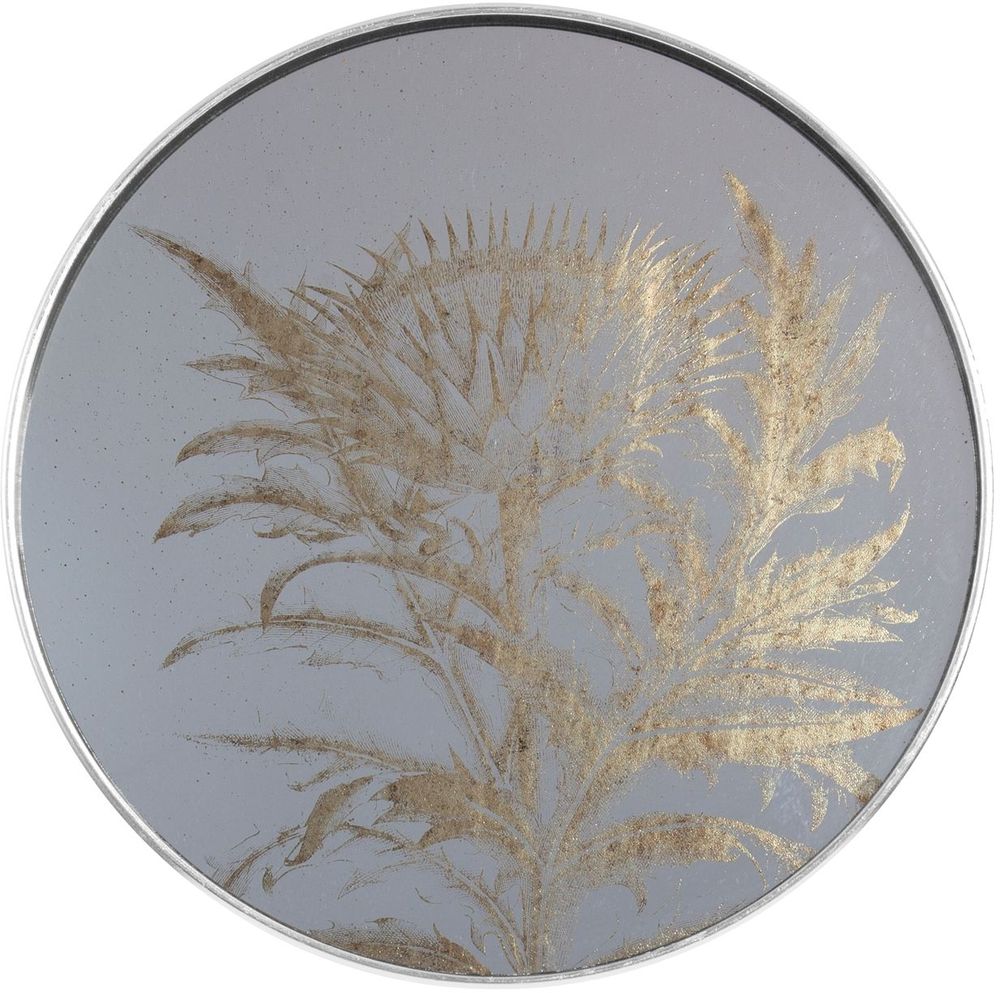 En fin mönstrad serveringsbricka med spegeleffekt. Tillverkad i en blandning av glas, plast och MDF. Kan användas till servering eller ljus/dekorationer, kan även hängas på väggen.