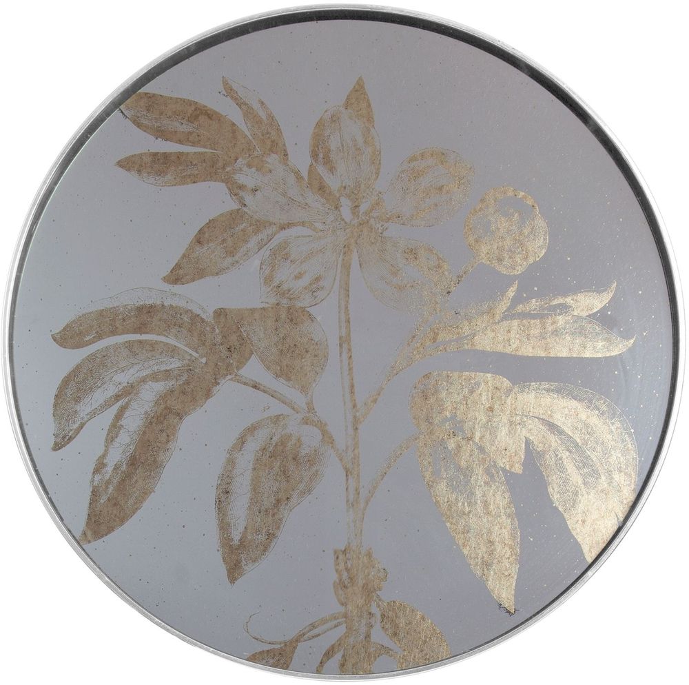 En fin mönstrad serveringsbricka med spegeleffekt. Tillverkad i en blandning av glas, plast och MDF. Kan användas till servering eller ljus/dekorationer, kan även hängas på väggen.