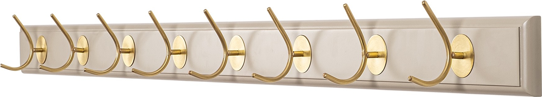 ?Kroklist av trä med krokar av mässing.