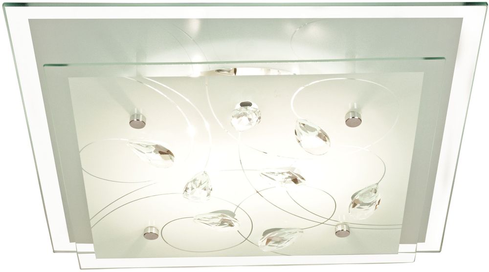 Taklampa i kromad metall och klarglas. Lätt montering i taket.