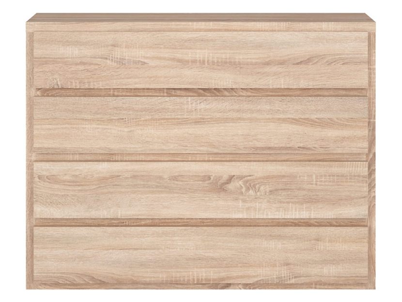 En rymlig byrå med fyra lådor i ek. Lådorna har integrerade handtag vilket ger mycket stilren och modern känsla.