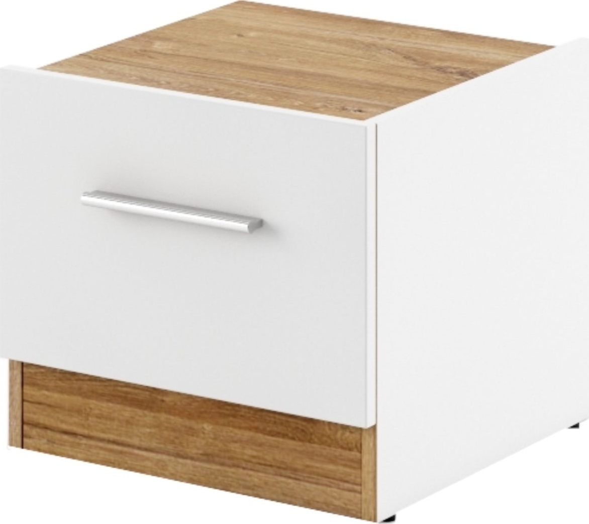Sängbord av spånskiva. Levereras omonterad.