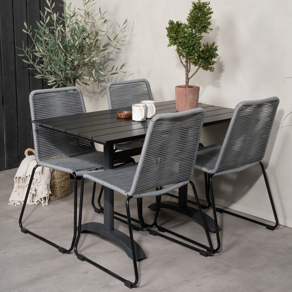 Denver utematgrupp med 4 st Lindos stolar - Svart/Grå
