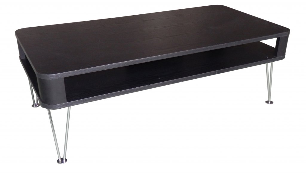 Soffbord designa i modern stil från Skånska möbelvaruhuset. Bordet är gjort med svart ekfoliering med stilrena kromade ben. Praktisk förvaring på hyllan i soffbordet för fjärrkontroller, tidningar m.m.