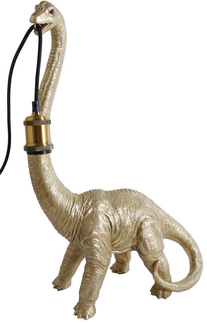 En fräck stor bordslampa, guldfärgad Dinosaurie.