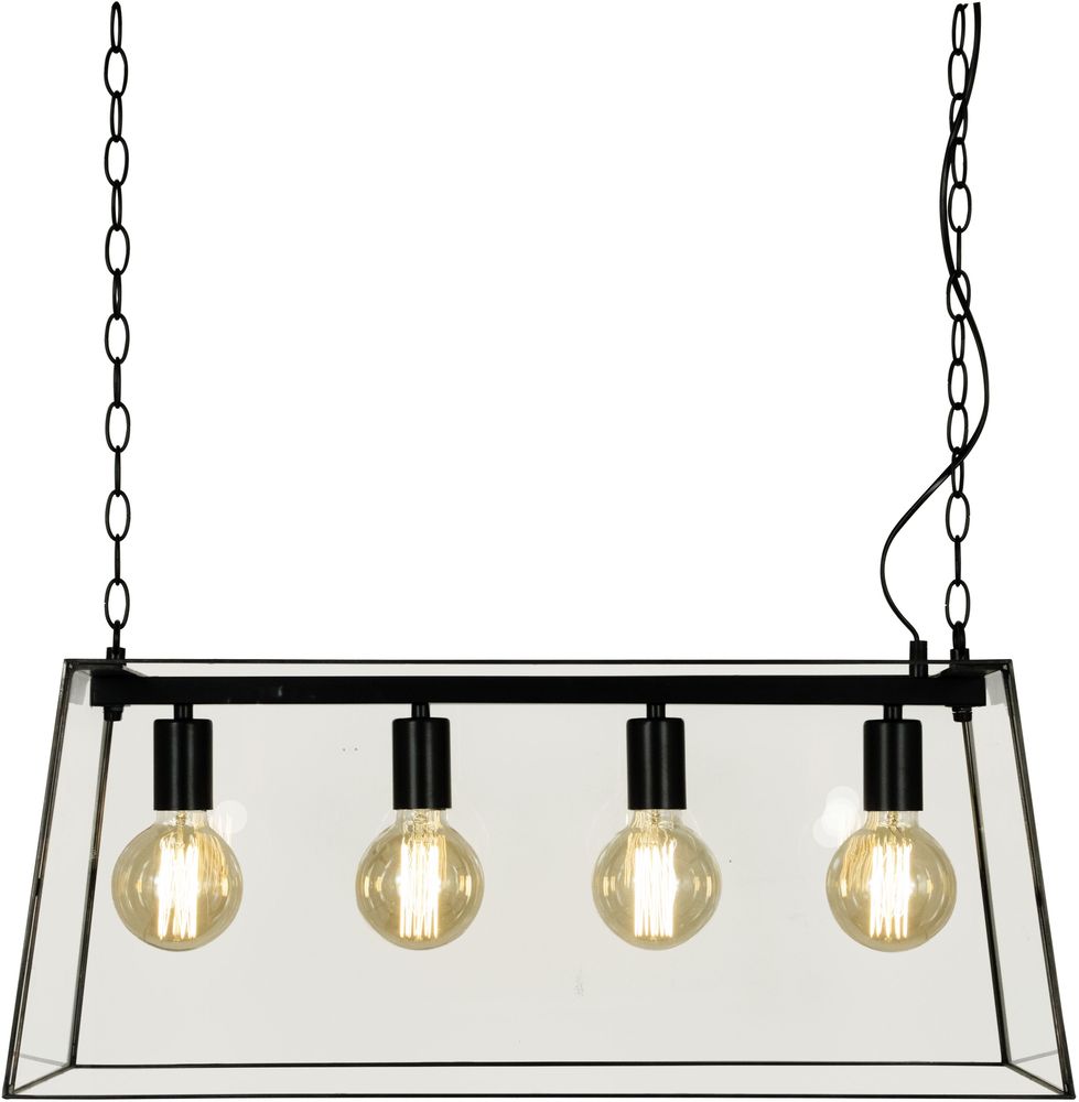 Taklampa i svart metall och klarglas. Hängs lätt upp i taket.