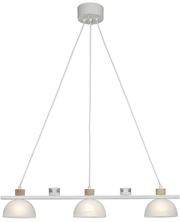 En härlig taklampa med en stilren design. Tillverkad i vit metall med detaljer i trä och glaskupor i murano glas.