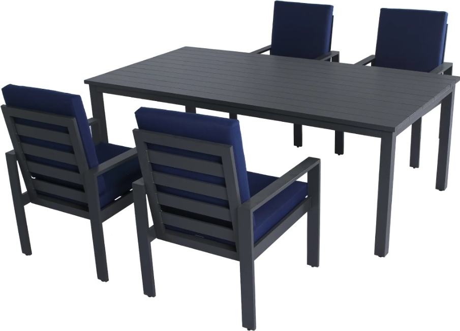 Djursvik exklusiva utegrupp med matt antracit pulverlackad aluminium stomme. Blå exklusiva rygg och sittdynor ingår. Hög rygg för god sittkomfort. Fyra stycken rejäla fåtöljer med ett matchande matbord. Komplettera med solstol i samma serie.