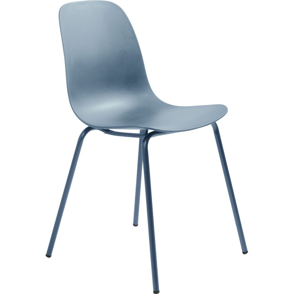 Drake duvblå stol med sits av polypropen och ben av metall.