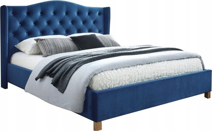 En fin säng med en elegant design. Sängen är tillverkad av solid trä och klädd med ett mycket behagligt sammet tyg för maximal komfort.