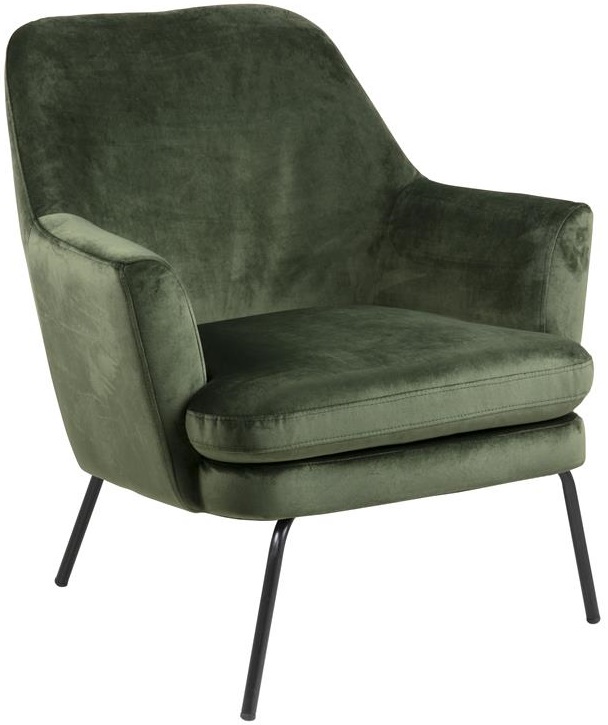 Bekväm fåtölj med en klassisk design. Stolen är täckt med mörkgrönt sammetstyg och benen är av svart pulverbehandlad metall. Fåtöljen passar in i flera olika rum, både för sig själv och i grupp. Fåtöljen ingår i vår Durham serie.