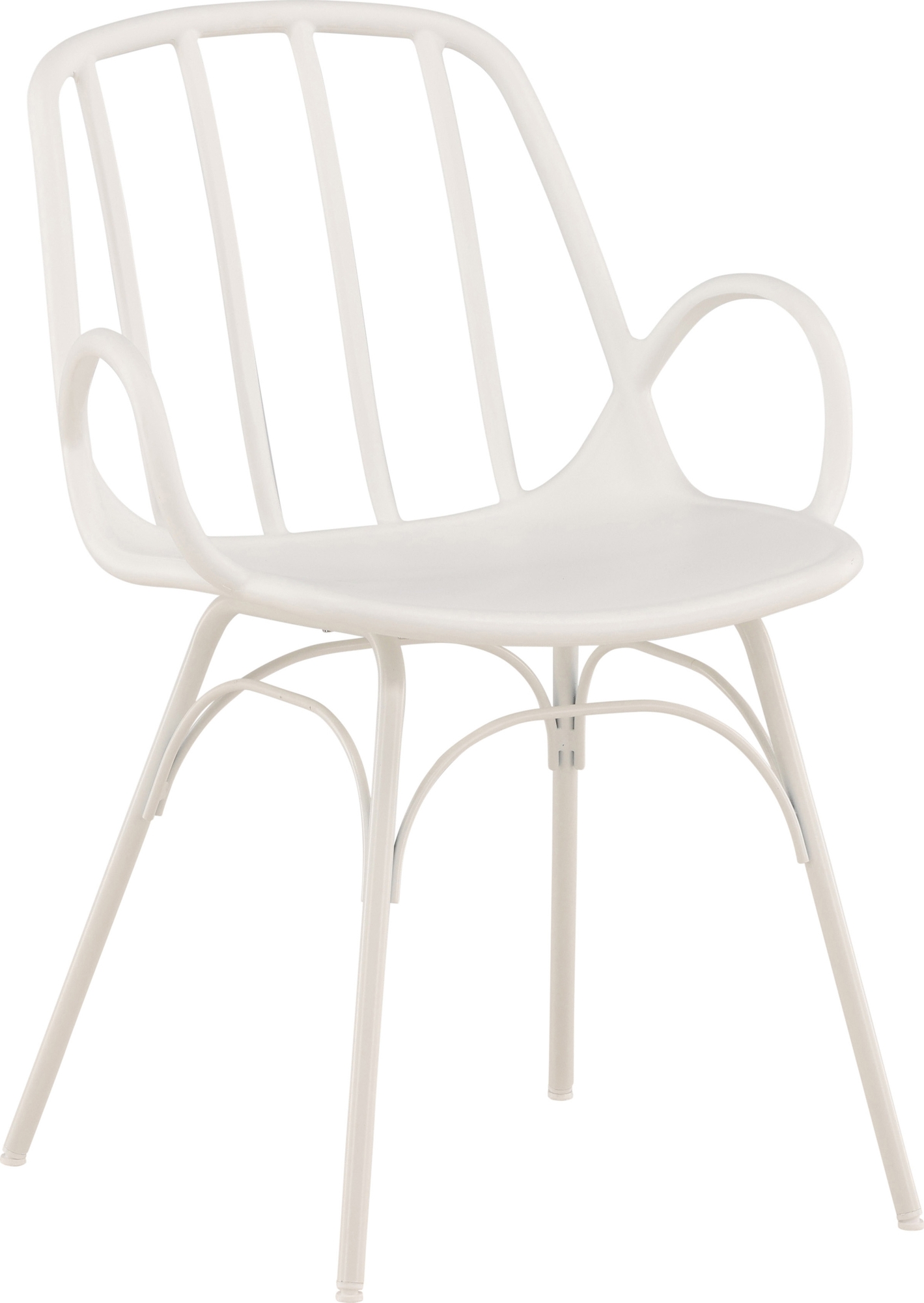 Matstol som skapar ett imponerande blickfång i hemmets hjärta! Den här stolen har en dekorativ och detaljrik design med böjda former, integrerade armstöd och utsvängda ben, genomgående tillverkad i slitstark plast och stål i smakfull vit kulör. Matcha med ett läckert matbord så får du en komplett matgrupp att samla familjen till för framtida måltider! Levereras omonterad.