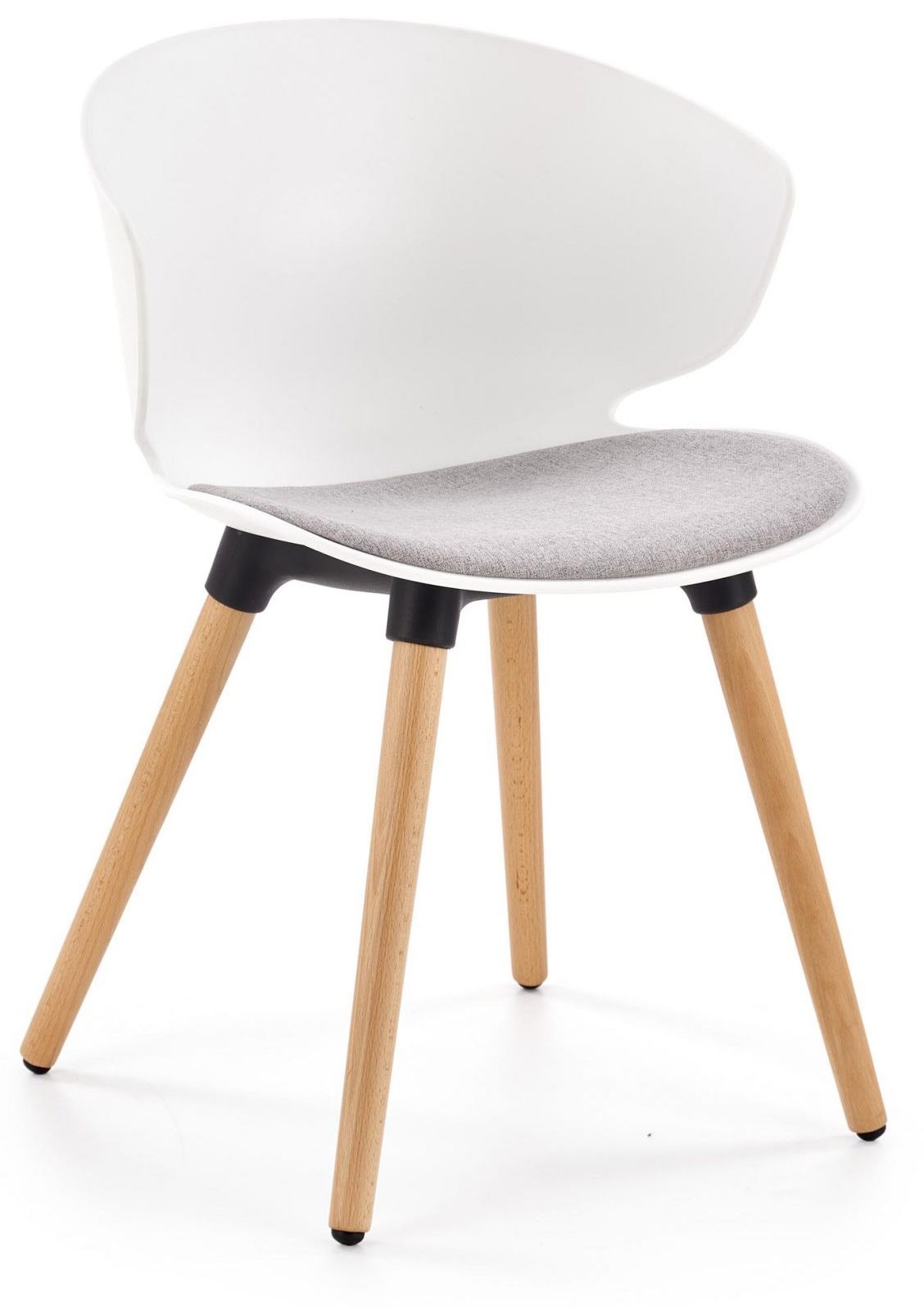 En snygg matstol med en stilren design. Stolen är tillverkad av plast med en mycket behaglig klädsel av tyg för maximal komfort och underredet är tillverkat av solid trä med dess naturliga träd look.