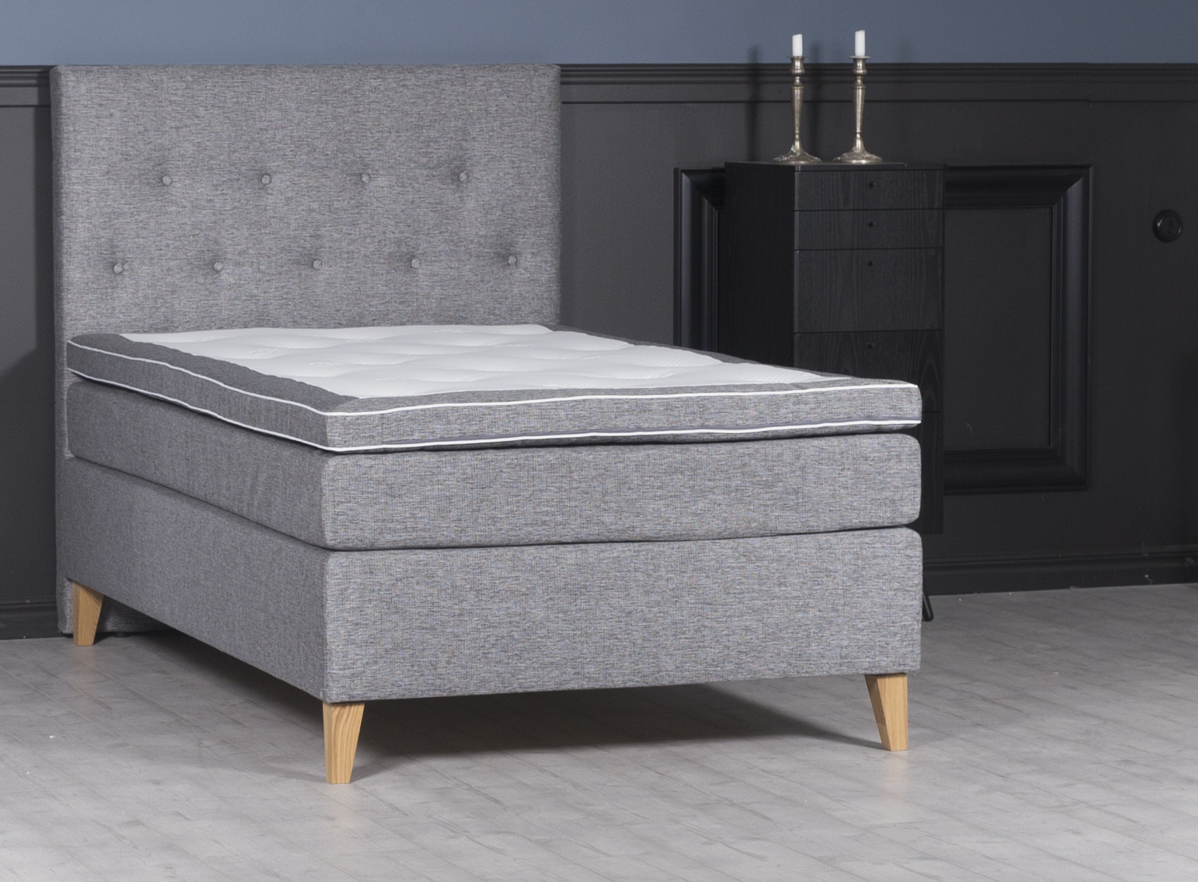 Sängen är uppbyggd med 1 st 120 cm bred sängbotten. Sängbotten är byggd i 12 cm massiv träram i fingerskarvat furuträ klätt i ett slitstarkt tyg.