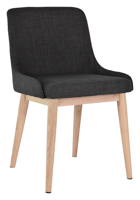 Edgar matstol är en stol i modern design. Sittdelen är stoppad med kallskum och klätt med svart tyg för bästa komfort. Runda smidiga ben i massiv ek.