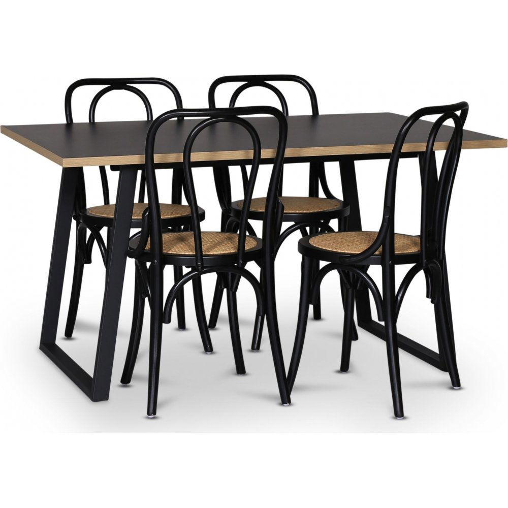 Edge 3.0 matgrupp 140x90 cm inkl 4 st Samset svarta böjträ stolar - Svart Högtryckslaminat (HPL)