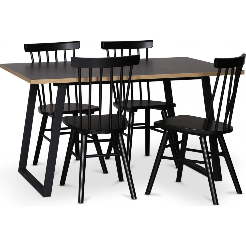 Inklusive 4 st Orust pinnstolar, en svenskdesignad klassisk pinnstol i massivt trä som ger en skön tyngd och kvalitet i stolen. Stolen är i svartlackat utförande med sex ribbor i stolsryggen. Den har en djupare sits och en stabilare konstruktion än de flesta pinnstolar på marknaden.