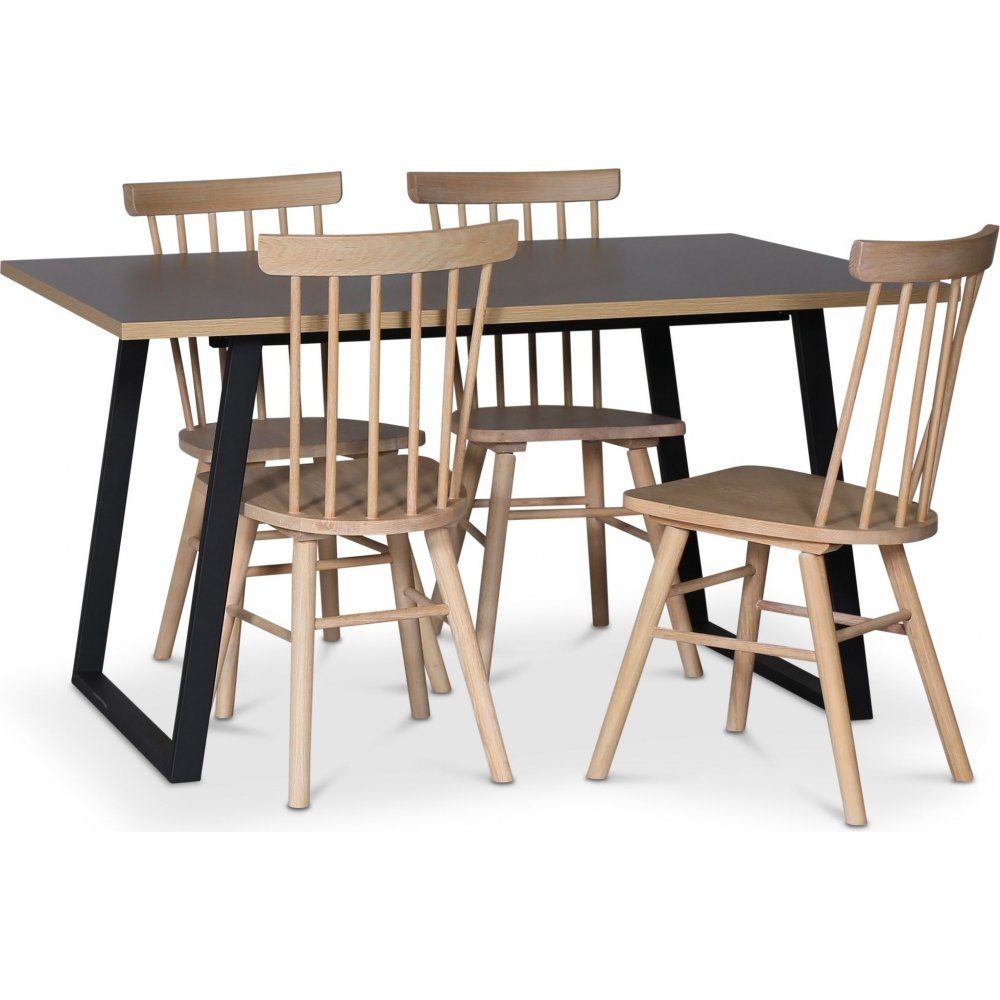 Inklusive 4 st Orust pinnstolar, en svenskdesignad klassisk pinnstol i massiv vitoljad ek, ett slitstarkt träslag med hög densitet som ger en skön tyngd och kvalitet i stolen. Stolen är i ett utförande med sex ribbor i stolsryggen. Den har en djupare sits och en stabilare konstruktion.