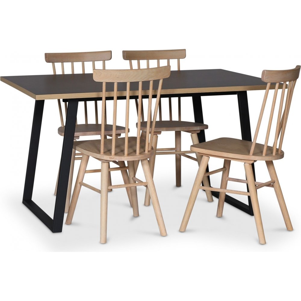 Edge 3.0 matgrupp 140x90 cm inkl 4 st vitoljade Orust pinnstolar - Svart Högtryckslaminat (HPL)