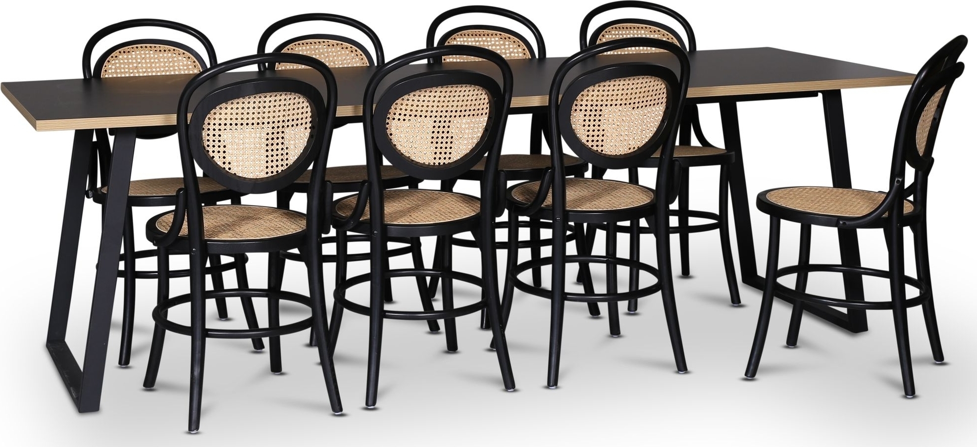 Edge 3.0 matgrupp 240x90 cm inkl 8 st Alicia svarta stolar böjträ - Svart Högtryckslaminat (HPL)