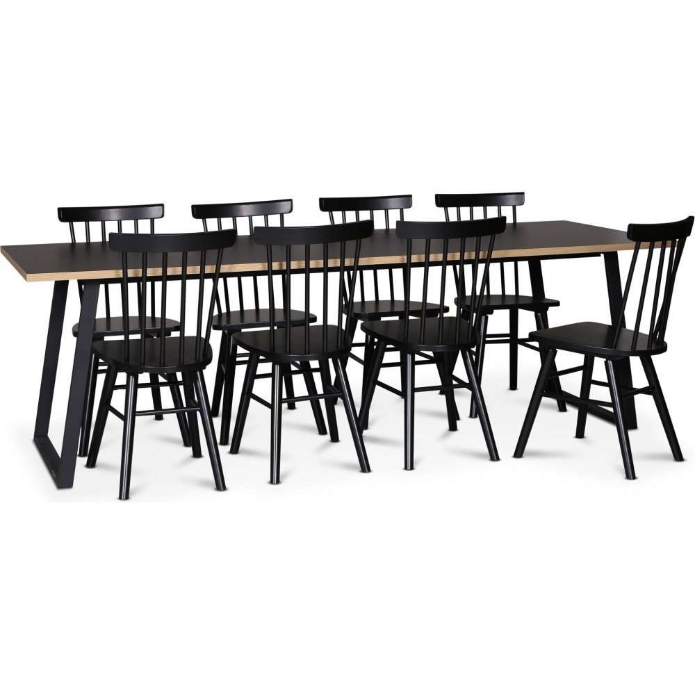 Edge 3.0 matgrupp 240x90 cm inkl 8 st svarta Orust pinnstolar - Svart Högtryckslaminat (HPL)
