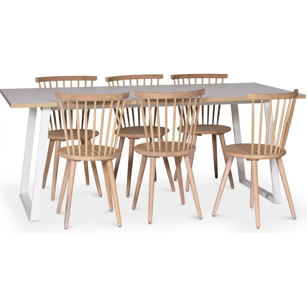 Edge matgrupp; Matbord i vit HPL 190x90 cm med 6 st Castor pinnstolar i whitewash