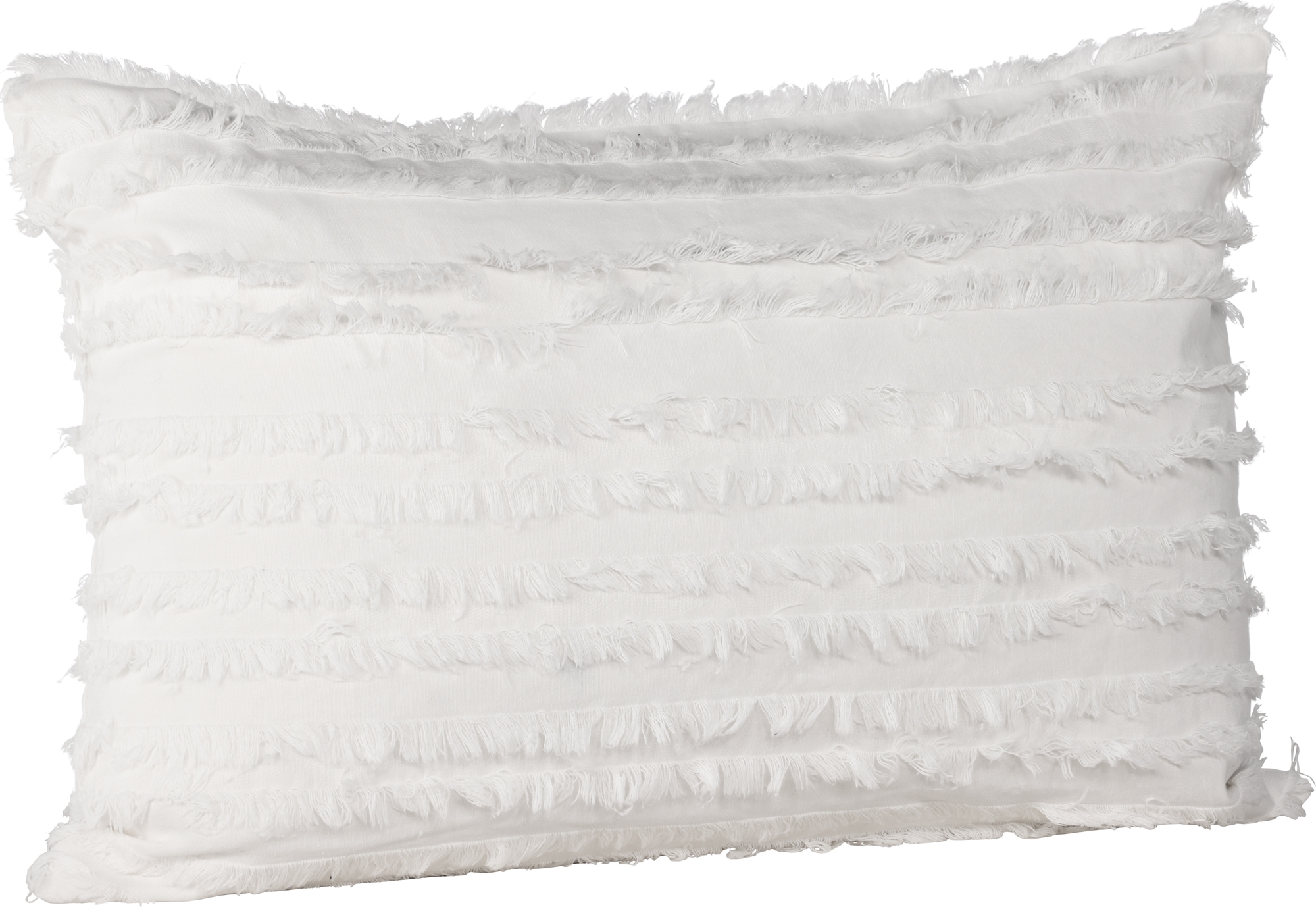 Kuddfodralet i slitstarkt bomullstyg som står sig över tid. Fodralet har dekorativa fransar som skapar ett snyggt linjärt mönster. Här i en snövit nyans som enkelt passar övrig stil i hemmet. Kombinera med andra kulörer och storlekar för att skapa ett varierande och modemedvetet blickfång till din inredning.
