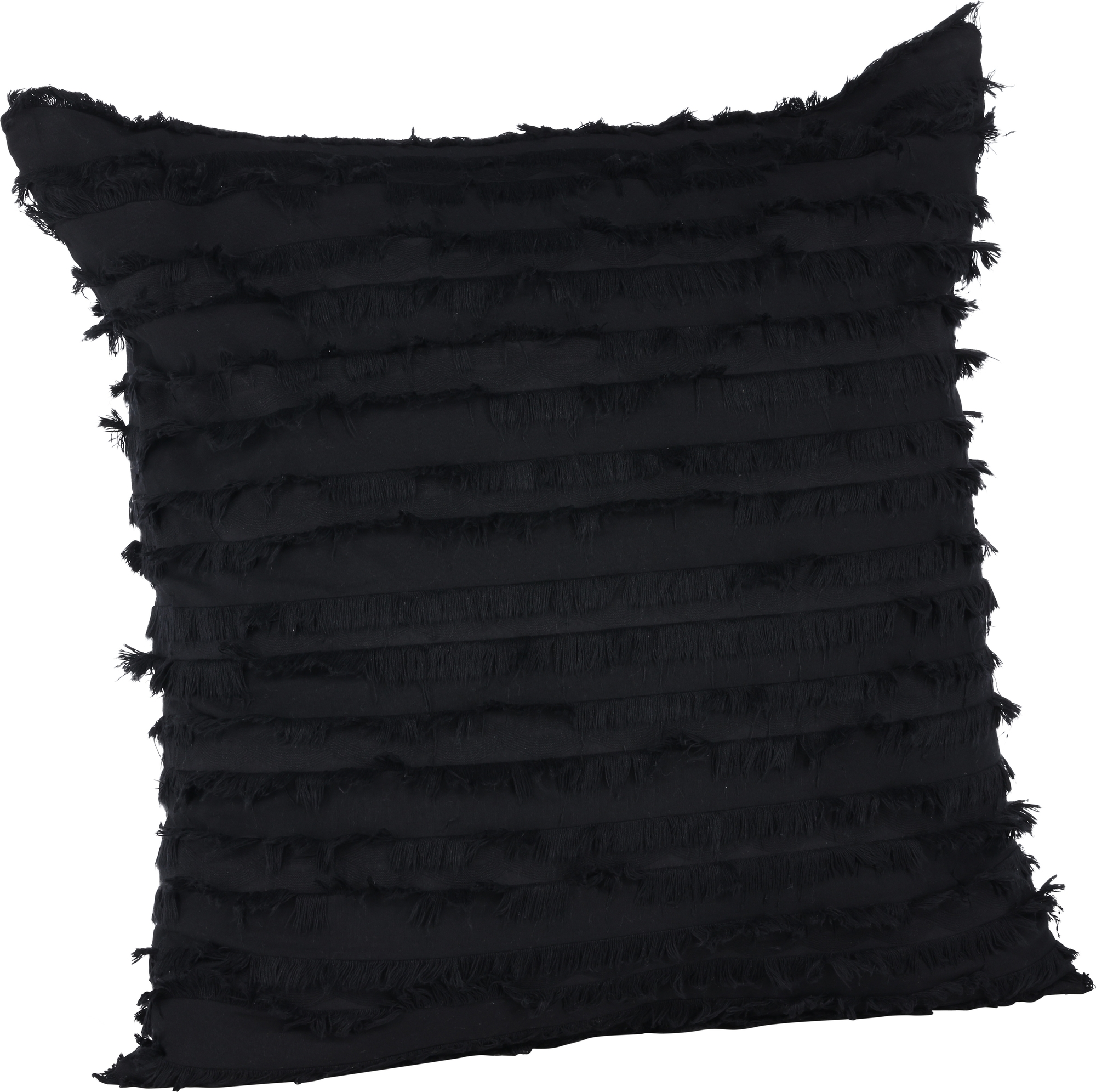 Skapa ett kaxigt blickfång med ett svart kuddfodral som ger din soffa ett lyft. Det här kuddfodralet är tillverkat av slitstarkt bomullstyg som står sig över tid. Fodralet har dekorativa fransar som skapar ett snyggt linjärt mönster. Kombinera med andra kulörer och storlekar för att skapa ett varierande och modemedvetet blickfång till din inredning.