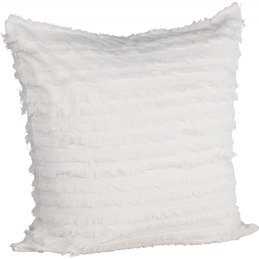 Kuddfodralet i slitstarkt bomullstyg som står sig över tid. Fodralet har dekorativa fransar som skapar ett snyggt linjärt mönster. Här i en snövit nyans som enkelt passar övrig stil i hemmet. Kombinera med andra kulörer och storlekar för att skapa ett varierande och modemedvetet blickfång till din inredning.
