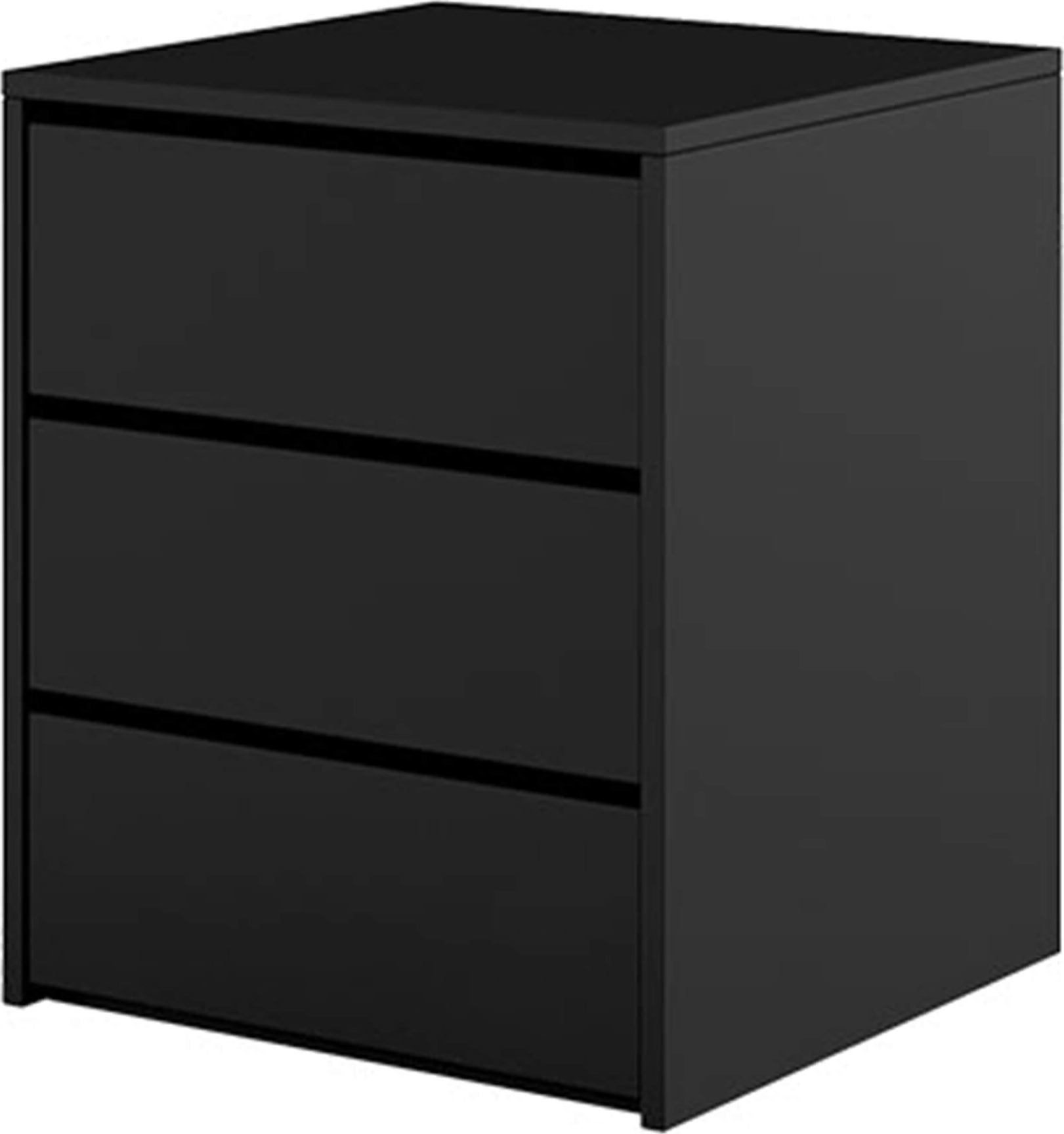 Byrå av spånskiva. Handtag av plast med matt finish. Levereras omonterad.