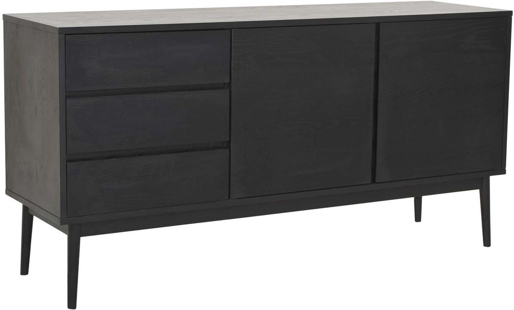 Ett snyggt sideboard med en modern design. Tillverkad i trä/MDF med svartlackerat askfaner. Två praktiska skåp och tre lådor för smart förvaring.