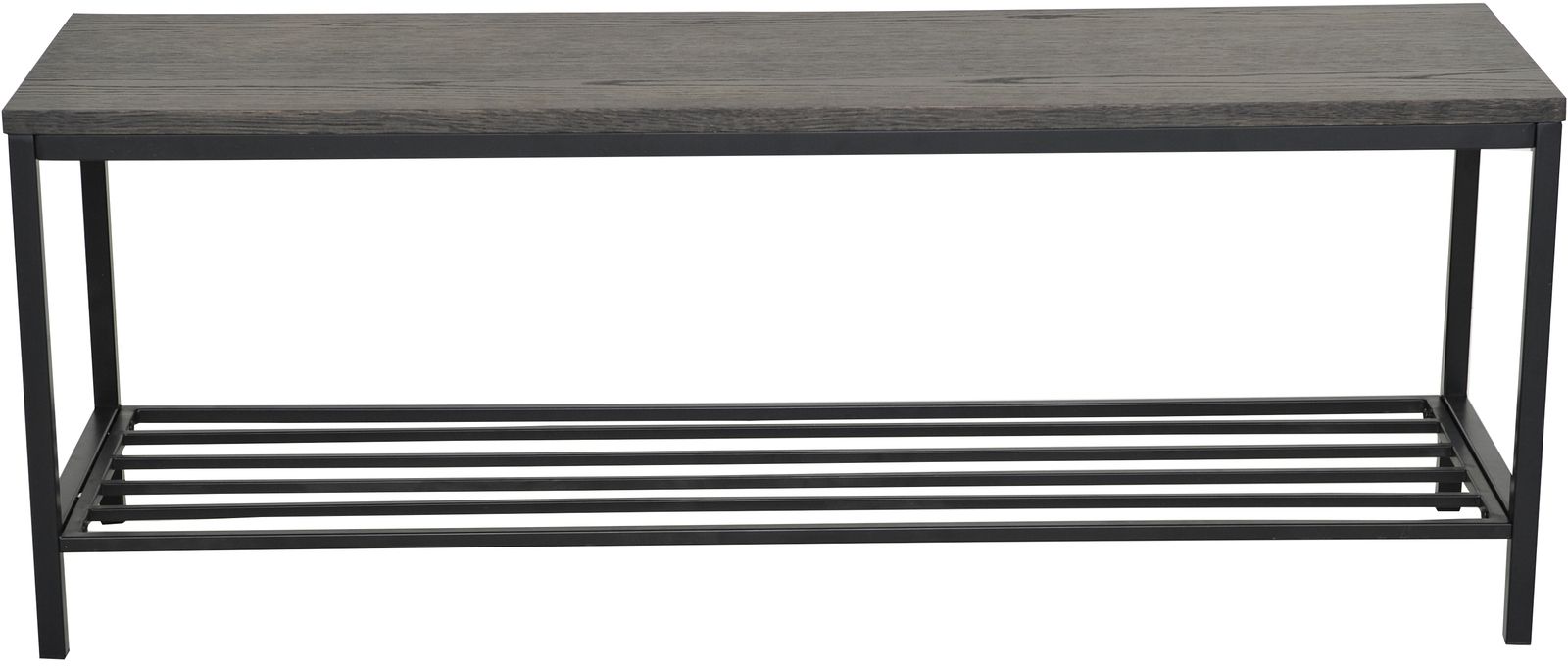 Skohylla i brunlackerad ekfaner med stomme av svart metall.