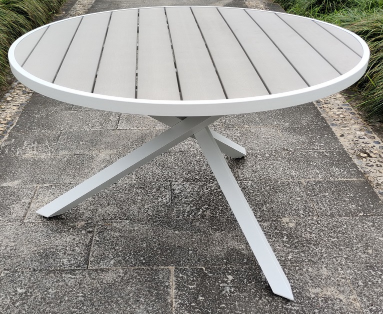 Ekenäs matbord i vitlackad aluminiumstomme med grå polywood.