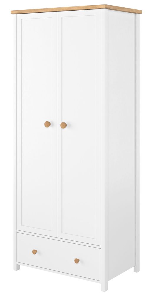En mysig garderob med en klassisk design. Tillverkad i MDF med goda förvaringsmöjligheter i form av ett stort skåp med klädstång och en låda undertill.