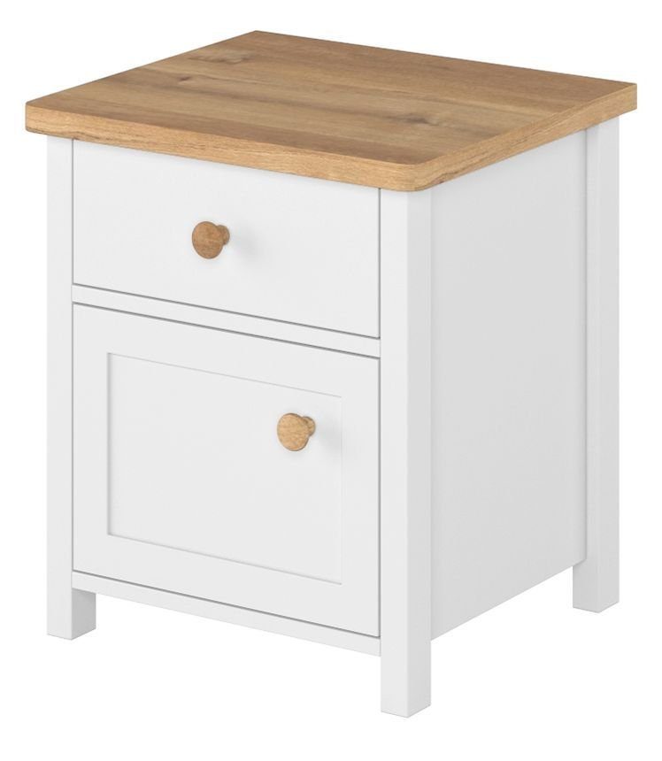 Ett mysigt sängbord med en klassisk design. Tillverkad i MDF med goda förvaringsmöjligheter i form av ett skåp och en låda.