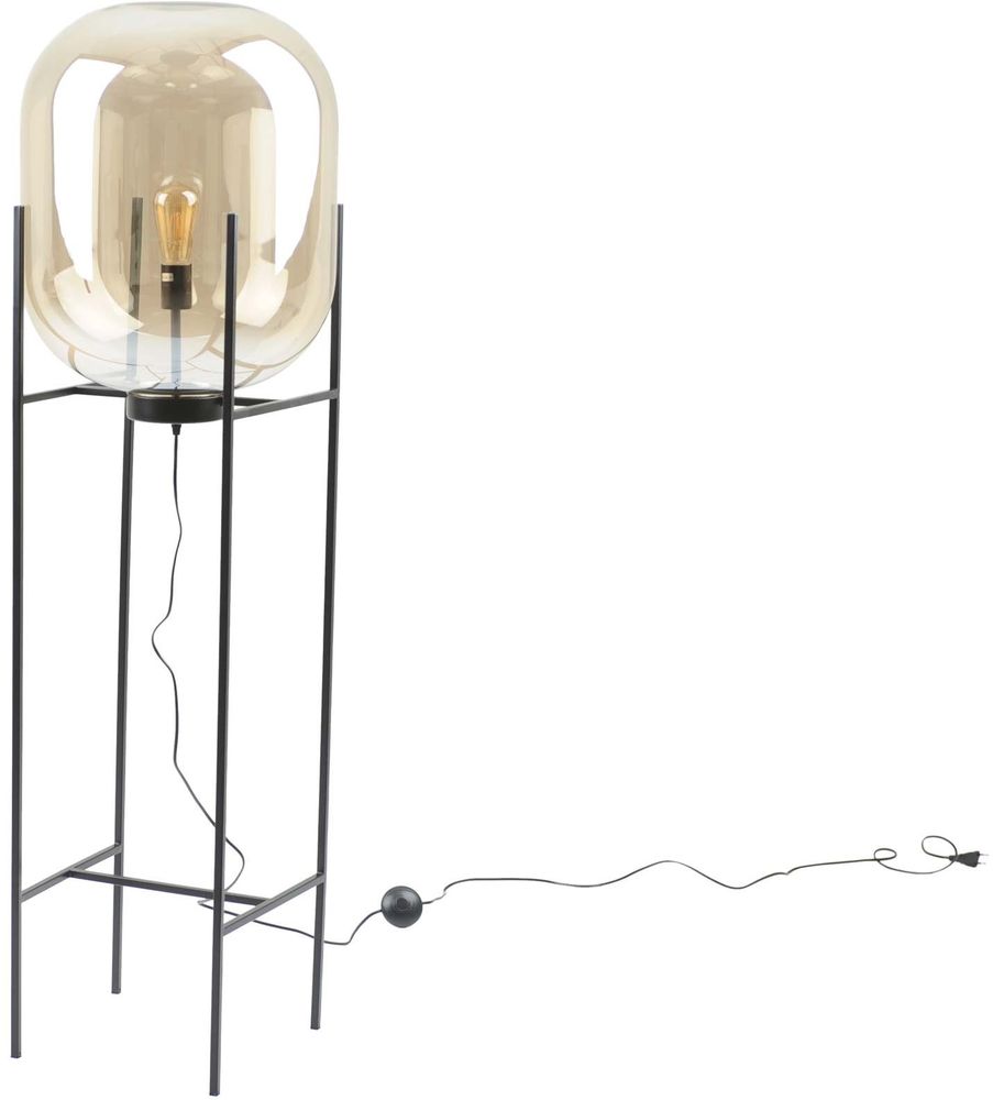 En stilren golvlampa med retro design. Foten är tillverkad av svart metall och kupan är av klarglas. Strömbrytare på sladden.