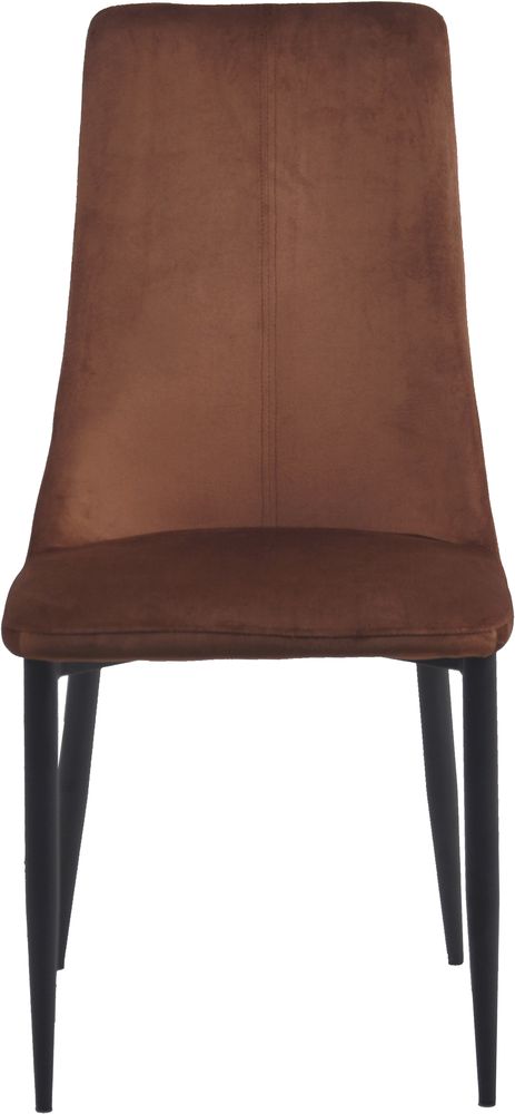 Stol i rostfärgad sammet, stoppad i både sits- och rygg. Underrede av svartlackad metall.