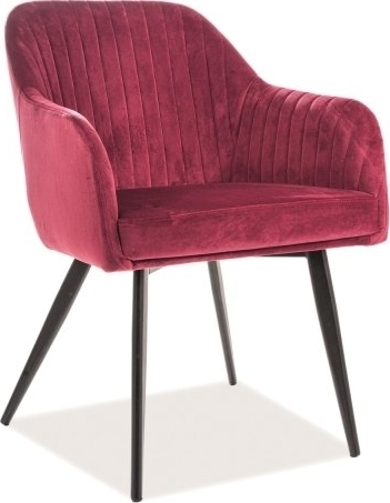 Matstol i metall. Klädd med polyester i sammetsimitation.