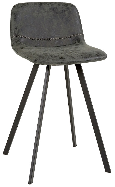 Barstol i vintage stil med svartlackade ben av metall. Sitsen och dynan är klädda i mörkgrått PU som liknar antikt läder.