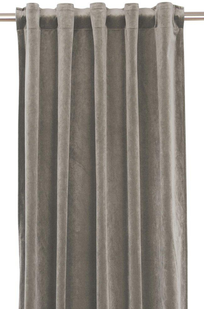 2-pack gardiner i mjukt sammetstyg som ger fin lyster och liv till gardinen. Sammeten är jämn och tät vilket gör tyget idealiskt för gardiner. Gardinen har multiband i ovankant, fållade långsidor och overlocksöm i nederkant. Multibandet är en flexibel lösning som gör att gardinen kan hängas upp antingen med fingerkrokar, räkor eller direkt på en stång beroende på vilken typ av veck och vilket fall du vill ha på gardinen. Använd snabbfållningsband för att få önskad längd på gardinen. Kan krympa upp till 2%.