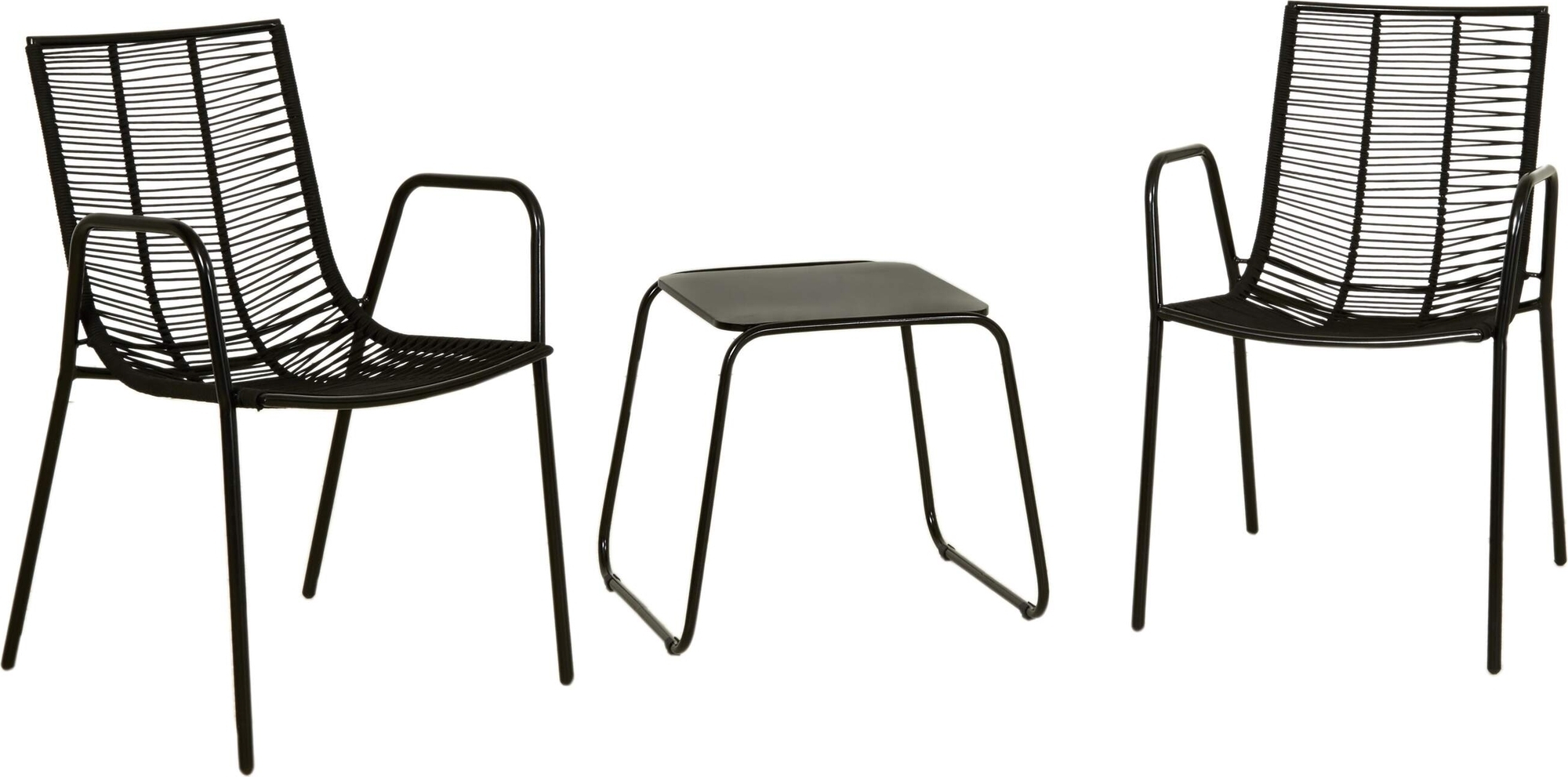 En mysig möbelgrupp med en modern design. Stolarna och bordet är tillverkade i stål och repsits/rygg. Gruppen passar perfekt till uteplatsen eller balkongen för att ge den extra mysfaktorn som kan behövas.