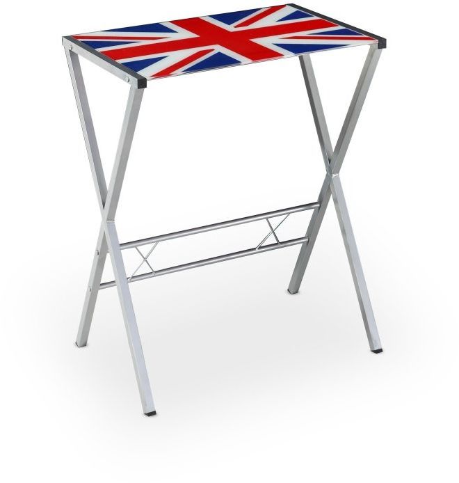 Ett ungdomligt skrivbord med en stilren design. Underredet är tillverkat i vit metall och bordsskivan är av mycket tåligt glas med ett härligt tryck av den brittiska flaggan. Bordet passar perfekt in på flera olika platser i hushållet.